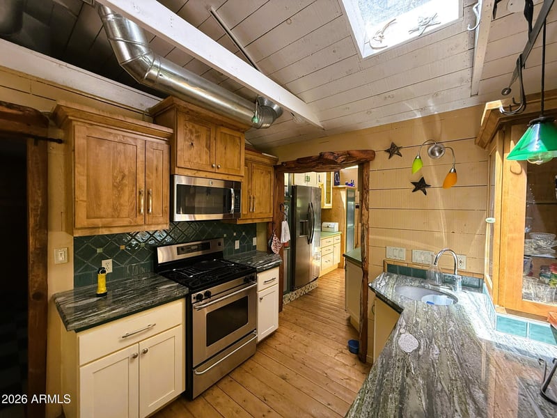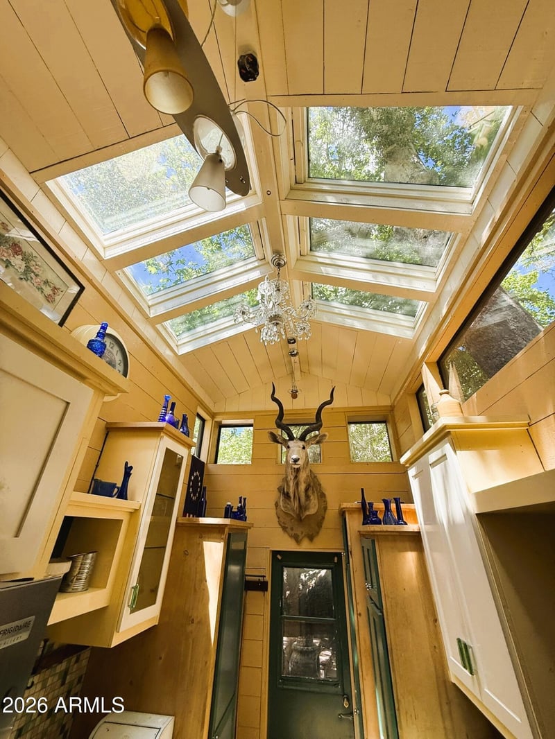 Listing details for 46200 Seven Springs Rd #16, Carefree, AZ 85377 : Seven Springs moves at its own pace, and after one night here, so will you. Grab a book and sink into the screened porch while the canyon fills with birdsong and the creek negotiates with the rocks below. Sleep under a sky that actually shows up at night. Wake up to warblers. Wander into a kitchen where skylights do the work that windows only dream about. This is the place you describe to people on Monday morning, searching for words that don't quite land. Tucked deep in the national forest, this leasehold cabin exists in a pocket of the world that doesn't ask anything of you. Outdoor lovers, birders, creek people. People who know the difference between getting away and actually being gone. Some places you visit. Some places find you. Welcome home.