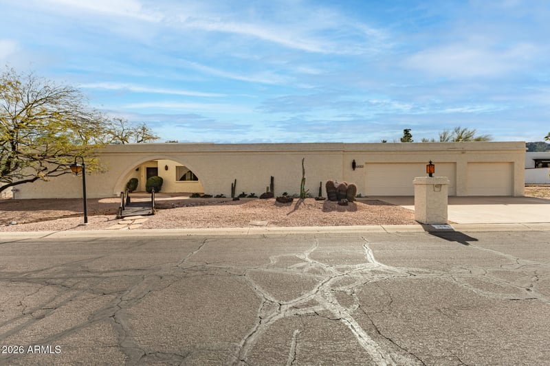 Listing details for 4621 Onyx Ave, Phoenix, AZ 85028 : Nestled on almost 2/3 acre of natural desert with un-obstructable Camelback Mountain views across an expansive common area, this late-70s Rancho Alta Vida ranch home offers the ideal mix of Paradise Valley-area prestige, 70s nostalgia, A-tier schools, PV Mall shopping/dining and Phoenix Mountain Preserve access. Lovingly maintained by the original owners for more than 40 years, the home features period details, a shady front courtyard, original parquet floors, double-sided fireplace, wet bar, split floor plan, newer roof (2022) and newer AC (2023). Rancho Alta Vida community amenities include tennis/pickleball courts and walking trails with easy access to Phoenix Mountain Preserve. Purchase includes architectural drawings and renderings to reduce potential renovation timelines and costs.