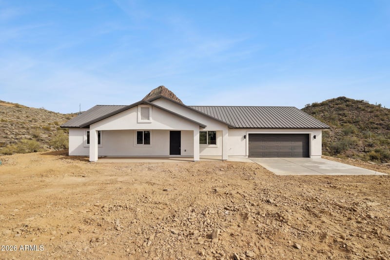 Listing details for 46210 36th Ave, New River, AZ 85087 : 2026 New Construction on 1.25 acres showcasing breathtaking mountain views, pristine desert landscape, and unforgettable panoramic scenery! This beautifully crafted 4BR/3BA home offers two luxurious primary suites—perfect for multi-generational living or hosting in style. The open-concept design features soaring vaulted ceilings and a stunning chef's eat-in kitchen with an oversized island, walk-in pantry, and seamless flow for entertaining. Elegant finished concrete floors add modern sophistication throughout. Relax under expansive covered patios and soak in vibrant sunsets. Complete with a private well and ample space for RVs, a shop, or outdoor retreat—this is elevated desert living at its finest.