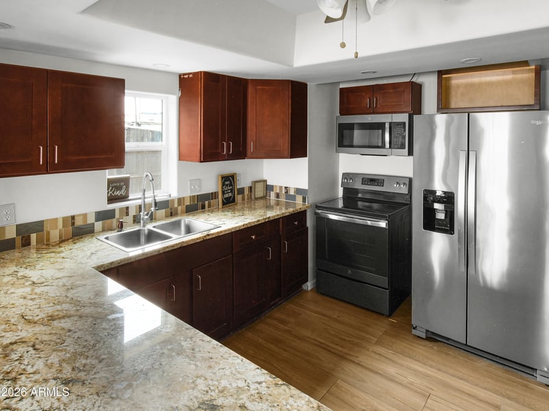 Listing details for 4714 23rd Ave, Phoenix, AZ 85015 : Welcome to this 3-bedroom, 2-bath home with 1,223 sq. ft. of living space on a spacious 7,954 sq. ft. lot in a highly desirable Central Phoenix neighborhood. This property has been thoughtfully updated with low-E windows, granite kitchen countertops, stainless steel appliances, tile flooring throughout, glass shower enclosures, upgraded vanities, window coverings, and a tankless water heater. The backyard is both spacious and functional, featuring an RV gate for easy access and a storage shed with 40-amp power, perfect for projects or extra storage needs. With its large lot size, there's plenty of room to enjoy outdoor living. Situated across from Westwood Elementary School and close to the I-17 freeway, you'll enjoy quick access to all parts of the Valley.