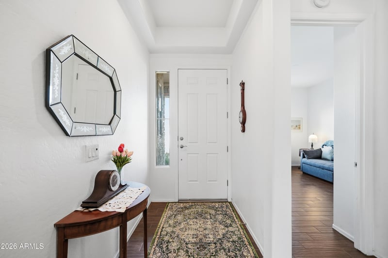 Listing details for 4715 Narrowleaf Dr, Gilbert, AZ 85298 : Beautiful Ironwood Model with stacked stone exterior trim features a spacious great room floor plan w/cozy gas fireplace, porcelain plank tile floors thru out home, gorgeous granite counter tops, center island, Stainless Steel refrigerator & dishwasher, staggered cabinetry w/crown modeling, hardware, pendant lights, R/O, pantry, breakfast bar & a computer tech desk w/granite counter tops & built in cabinets for storage! NEWER A/C! Spacious Primary Suite features a LG bathroom w/raised height counters & double sinks, LG shower, Big walk in closet w/Classy Closets organizers. guest suite and full bathroom tub/shower combo. Huge laundry room, space for a desk/office, washer & dryer included. Enjoy a LG fenced backyard with southern exposure, covered patio & a gas stub on patio for a BBQ. Ad Additional features include: New Stove and Microwave, accent lighting by TV / fireplace area, both bathrooms have raised height toilet seats, newer hot water heater replaced in 2020, a soft water system, 2 car garage with direct entry into home, zero grade garage floors (No Steps) and a alcove space in garage for more storage, Paver stone extended patio w/gas stub. New turf in backyard and a sunscreen on bedroom window