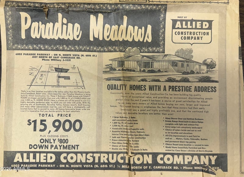 Listing details for 4719 69th St, Scottsdale, AZ 85251 : Rare opportunity! Unbeatable Location! 17,646 sqft Cul-de-sac lot. Views of Camelback out your front window! No HOA. RV Gate. HUGE workshop. Scottsdale's desirable Paradise Meadows home with endless potential. Offering 3 bedrooms plus a den, 2 bathrooms, this classic ranch-style home is ready for its next chapter. Whether you're looking to restore its mid-century charm, renovate to your style, or reimagine the property entirely, the possibilities here are truly endless. A standout feature is the 1,000+ sq ft attached garage/workshop with its own independent HVAC system, an ideal setup for car enthusiasts, hobbyists, creatives, or a home-based business. The backyard is a rare find in this area, providing ample space for expansion, outdoor living, or a future custom home. With R-10 zoning and a nearly half-acre lot, this property also presents a compelling opportunity for builders or those seeking a larger footprint in a prime Scottsdale location. Major system updates have already been completed, including: roof (2018) HVAC - main house (2024) HVAC - workshop (2022) New water line from street to house (2023) water heater (2023) City sewer connection (2013) Located just minutes from Scottsdale Fashion Center, Old Town Scottsdale, the Greenbelt, dining, shopping, golf, and entertainment, this property combines location, lot size, and potential in one unique offering. Whether you envision preserving a classic, creating a modern masterpiece, or building new, this is a rare chance to own a piece of Scottsdale with room to grow.