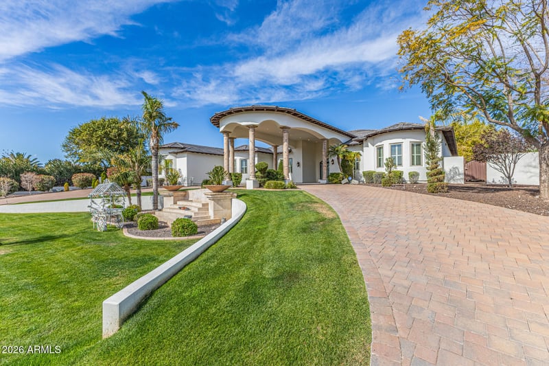 Listing details for 4734 Electra Ln, Glendale, AZ 85310 : Private gated custom estate situated on an expansive over-one-acre lot with breathtaking mountain views and no HOA. This exceptional home features 12-foot ceilings, built-in ceiling speakers, travertine and porcelain tile flooring, and elegant iron-framed glass doors throughout.The expansive living room is highlighted by a motorized pocket sliding glass door, perfect for seamless indoor-outdoor living, and a generous wet bar ideal for entertaining. The chef's kitchen offers a large center island, granite countertops, walk-in pantry, built-in Viking refrigerator, dual ovens, and a six-burner gas cooktop.The split primary suite is a true retreat, featuring a two-way fireplace, Jacuzzi tub, dual vanities, walk-in shower, and spacious walk-in closet. All additional bedrooms are en-suite with full bathrooms and walk-in closets.Outdoor amenities include a viewing deck, covered patio, oversized diving/play pool, children's play area, RV garage, and a fully equipped guest house with kitchen and full bath.Conveniently located near I-17 and Loop 101, with easy access to golf courses, hiking trails, and nearby amenities. Brand-new roof underlayment recently installed.