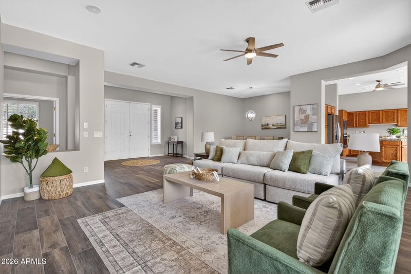 Listing details for 4735 Azalea Dr, Gilbert, AZ 85298 : Welcome to the rare and highly coveted 2 bedroom + den Dogwood floor plan in Trilogy at Power Ranch, Gilbert's award winning 55+ golf course community. The versatile den can easily function as a bedroom or home office, offering flexibility to fit your lifestyle. This open and inviting home has new luxury flooring, new extra-plush carpet, fresh interior and exterior paint, epoxy garage floor, and a new water softener.