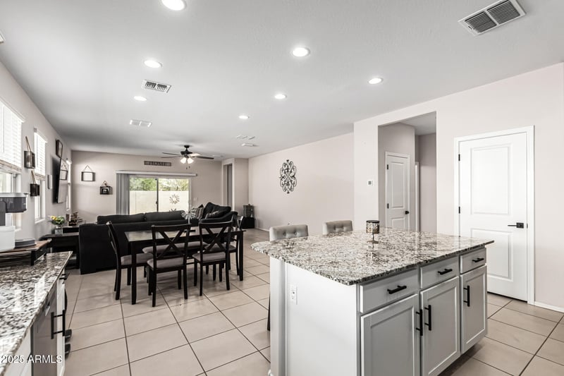 Listing details for 4811 103rd Dr, Tolleson, AZ 85353 : 2024 built; 5-bedroom / 3-bathroom 2241 sq/ft home features an inviting open layout enhanced by tile flooring, neutral tones, & abundant natural light. The open kitchen boasts recessed lighting, Stainless Steel appliances, white cabinets complementing the granite counters, & center island w/breakfast bar. All new black hardware. Large main bedroom has a private bathroom showcasing a glass-enclosed shower, dual sink vanity, & spacious walk-in closet. 2-car garage with an extended driveway & a 92-inch double gate, providing plenty of parking for your toys. The backyard is a blank canvas awaiting your personal touch, featuring a covered patio for relaxing & a convenient storage shed.