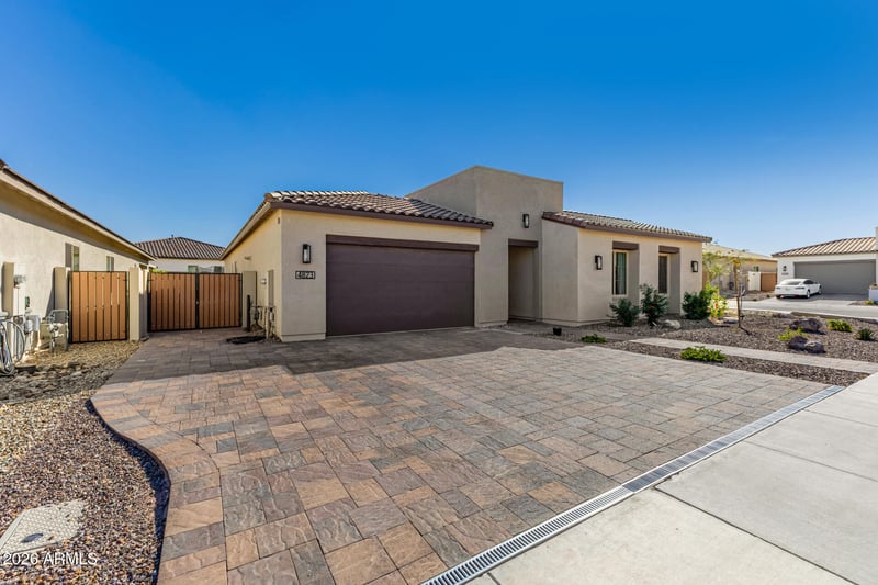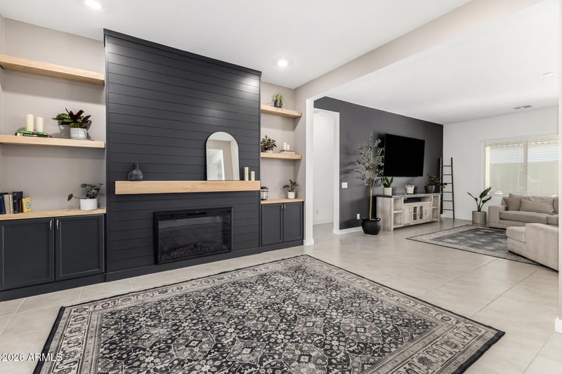 Listing details for 4823 Flat Iron Ct, Queen Creek, AZ 85144 : Beautiful highly upgraded single-level home with mountain views! Featuring a modern design, 10' ceilings, and a desirable split floor plan, this open layout offers tile flooring in all the right spaces and abundant natural light. The kitchen includes a large quartz island, stainless steel appliances, gas cooktop, dark cabinetry, and walk-in pantry. The great room showcases a custom accent wall with fireplace and built-in shelving. A spacious secondary living area/bonus room offers excellent flexibility and could easily be enclosed for a 6th bedroom, office, or game room. The primary suite features a huge walk-in shower, dual sinks, and an oversized walk-in closet. Enjoy low-maintenance desert landscaping, an extended paver driveway, and a private backyard. Close to hiking & Shopping!