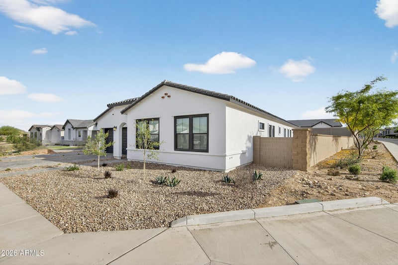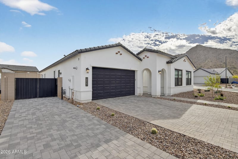 Listing details for 4823 Grayback Ln, Queen Creek, AZ 85144 : Brand new-completed in 2025, this stunning home sits on one of the largest lots in the community & captures breathtaking mountain views right from your backyard .This thoughtfully designed single-level home features a split floor-plan with 4 bedrooms, 2 versatile den spaces, one enclosed with barn doors & 3 full baths. Clean, contemporary finishes & smooth wall texture create a polished feel throughout. The gourmet kitchen is a true centerpiece with a built-in refrigerator, gas cooktop, double wall ovens, stacked maple cabinetry, quartz waterfall island, walk-in pantry, beverage fridge & elevated lighting. Smart home features with Alexa integration, surround sound prewire in/out, tankless water heater, RO & soft water system. The spacious primary suite offers dual sinks, a soaking tub, tiled shower, and an oversized closet. The 3 car tandem garage includes a dedicated EV outlet & extended space for storage. The front yard features charming desert landscaping with a welcoming walkway, private courtyard, and paver driveway, plus an additional paver drive leading to the RV gate for added convenience. The covered patio & expansive backyard offers endless potential-perfectly suited for a custom pool or outdoor retreat, all set against unobstructed mountain views. A rare opportunity to own a brand new home with modern features on a premium oversized lot with stunning mountain views.