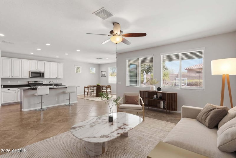 Listing details for 4827 Mcminn Ct, Gilbert, AZ 85298 : Welcome home to this Turn-Key BEAUTY!! Tucked away nicely in a serene cul-de-sac, this Spacious Home is sure to Impress. With an Open Layout the Well-Suited Kitchen features a Perfectly Appointed Island, Ample amount of Classic White Cabinets, Sleek Black Countertops and Stainless-Steel Appliances. Open to the Great Room, this Spacious Light and Bright Home Offers 3 Bedrooms + Den (Could be converted into a 4th bedroom) and 2 Bathrooms with Walk-In Closets throughout. In the Large Primary Suite, find a Gorgeous En-suite with Dual Vanities and Walk-In Shower. Beautiful Diamond Pattern Tile throughout the main living areas. Perfectly Situated on a large lot, the Saltwater Pool comes Fully equipped with self-regulating temperature which adjusts from warm to cool. This Nice Sized Backyard has been beautifully landscaped and comes equipped with a newer drip system (front and back) a Covered Kool-Deck Patio with Professionally installed Misters on the Entire Patio, including the side lounging area and there is even a Gated Dog run. It's the Perfect Space for Entertaining or Just Relaxing Outdoors. Located in Layton Lakes you can Enjoy Community Amenities such as lakes, streams, a fishing dock, 5 miles of meandering lighted trails surrounding lakes, waterfalls, equestrian trails, baseball and softball fields, tot lots, shaded ramadas, BBQ areas, splash park, basketball and lighted tennis courts. This is an amazing opportunity to be in a wonderful area and have the lifestyle you have been looking for! Conveniently located near the 202, San Tan Mall and Gilbert Regional Park.