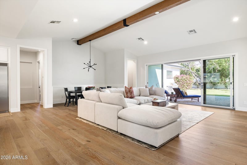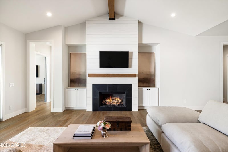 Listing details for 4833 31st St, Phoenix, AZ 85016 : Built in 2022 and lightly lived in, this home feels fresh and new. The open great room is bright and welcoming, with wide plank, white oak floors, a gas fireplace with built-ins and an easy flow for everyday living and gathering. The kitchen is the heart of the home, anchored by a 48'' Thermador range with six gas burners and a griddle. Quartz countertops, professional-grade stainless steel appliances, a farm sink, and a large island with built-in table seating make it as functional as it is beautiful — designed for real cooking and easy conversation. The primary suite is spacious and inviting, with a marble bath that includes a soaking tub, oversized shower, and a generous walk-in closet. Three additional bedrooms each have their own bathrooms and walk-in closets, offering comfort and privacy. There's truly room for everyone, with a versatile flex space behind a barn door that can be used for work or play... as a media room, or an additional family room. A covered patio overlooks lush landscaping and mature trees, creating a private outdoor setting. All of this within walking distance to some of the area's favorite spots, including Tarbell's, Tarbell's Tavern, The Collins, Chop Shop, and even a great cup of coffee at Hava Java. Well designed, beautifully finished, and completely move-in ready.
