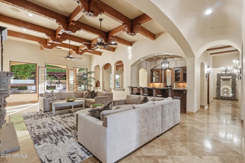 Listing details for 4838 Palomino Rd, Phoenix, AZ 85018 : ** Priced below appraised value ** Experience the scale and privacy of a true Paradise Valley estate within the coveted Arcadia Hillside neighborhood. This exceptional property presents a rare opportunity to enjoy the acreage and seclusion typically reserved for Paradise Valley, while benefiting from the community feel and walkability that make Arcadia so desirable. Set on 1.5 acres, the main residence features a thoughtfully designed floorplan highlighted by an extraordinary 2,000 square foot primary retreat with two expansive walk-in closets. Each guest suite is generously sized with its own private bathroom, offering comfort and privacy for family and guests. A private 1,000 square foot guest house is attached to the main residence and includes a full kitchen, making it ideal for extended stays or live-in accommodations. The main residence is accessed through a private gated drive that leads to a five-car garage. Built with block construction, the home offers superior insulation during the summer months while also minimizing exterior noise. In addition to the main residence, the property features a completely detached structure offering remarkable versatility for the next owner. With more than 3,400 square feet under roof and its own private gated driveway leading to an additional five-car garage, this space is ideal for a private training and recovery facility, a luxury car collector's showroom, or a wide range of other custom uses.