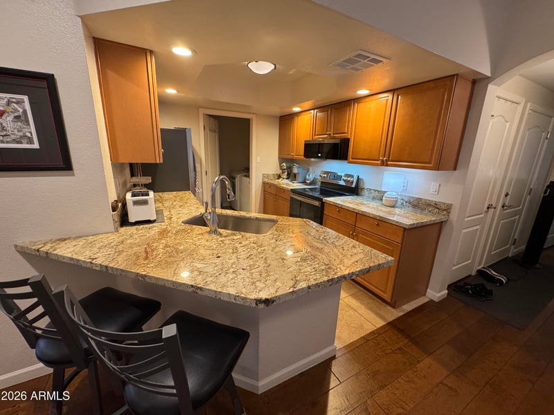 Listing details for 4848 36th St #129, Phoenix, AZ 85018 : Don't miss out on this high demand location where the Biltmore and Arcadia come together!! Ground level unit, 1 car garage with direct entrance into unit. Gated community! This unit is imacculate!! Yes, someone lives her and keeps this property in pristine condition. 2 bedroom split floorplan. Wood floors, showers were just remodeled in 2025, Kitchen was upgraded in 2023. Tankless water heater in 2023. Pool decking just updated. Resort like amenities with Heated pool, spa, outdoor BBQ and Clubhouse.