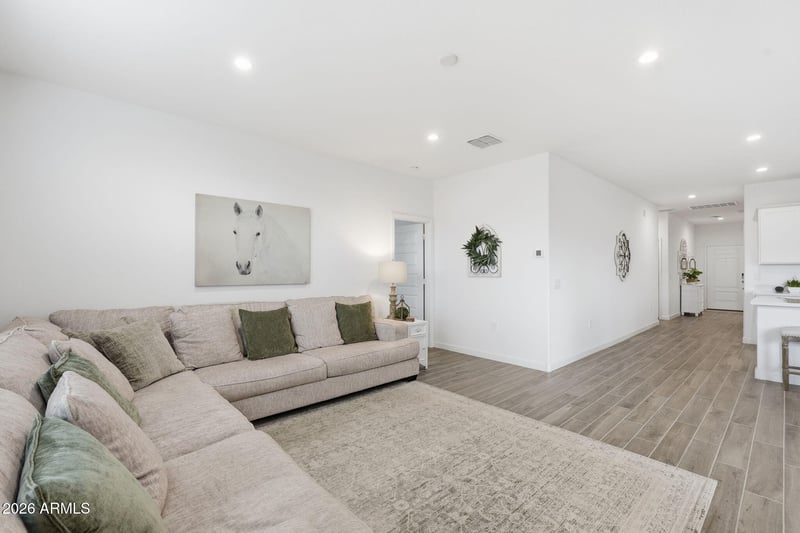 Listing details for 48486 Duran Way, Gold Canyon, AZ 85118 : Beautiful 2023 Built home in Entrada Del Oro featuring four bedrooms and modern smart home technology. Enjoy a spacious backyard with pavers extended from patio and easy maintenance stone. Premium lot with no neighbors behind and Superstition Mountain views., making this your private retreat. The primary suite offers dual sinks and a walk in shower. Kitchen kas stunning quartz counters and plenty of work space. and eat in kitchen overlooking the covered patio. Includes a two car garage Offering .assumable loan at 4.75% subject to lender approval makes this home move in ready.