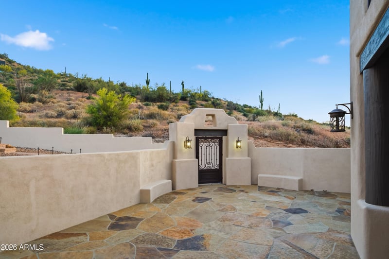 This 4,213 sqft custom residence plus separate casita, offers 4 beds, 4.5 baths, a dedicated office. No interior steps. Enjoy a resort style retreat with a heated pool and spa set against sweeping desert views. Upgraded highlights include owned solar, a private well, new exterior paint, paver-ed driveway. Serene and secluded yet just 10 mins to downtown Cave Creek.