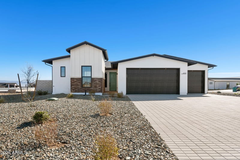 Listing details for 4909 Conrad Pl, Prescott Valley, AZ 86314 : Get ready to be captivated by this stunning property featuring the popular 604 floor plan. With 1,960 square feet, this spacious home offers two bedrooms plus a versatile flex space, perfect for an office or a cozy reading nook. Two well-appointed bathrooms complement the practical layout, and an attached three-car garage ensures convenience and security. Step into the expanded great room, where an impressive 11-foot ceiling adorned with faux beams creates an open and inviting atmosphere. The fireplace adds a touch of warmth and charm, making it a perfect gathering spot. For the aspiring chef, the kitchen is a dream come true, offering premium features that will inspire culinary creativity. The primary suite is a sanctuary with a walk-in closet providing abundant storage space.