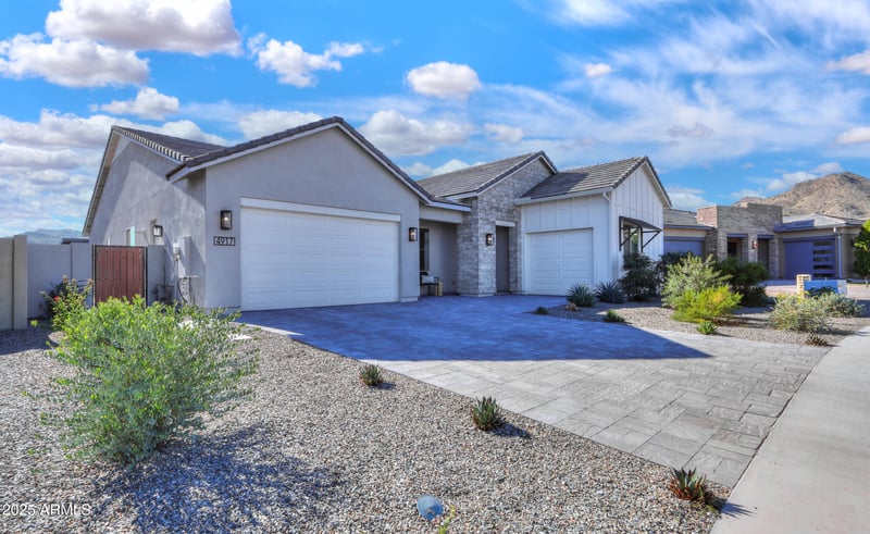 Listing details for 4917 Rogers Ps, San Tan Valley, AZ 85144 : Built in 2023, this spacious 4 bedroom, 3 bath home offers over 2,800 sq. ft. of elevated comfort and thoughtful upgrades. The property backs to a natural wash, providing a quiet, private backyard and panoramic mountain vistas the moment you enter the community. The professionally landscaped backyard (completed just 2 years ago) is perfect for relaxing or entertaining, enhanced by Security Screens enclosing the covered patio, and tinted rear windows for added comfort and efficiency. Inside, enjoy stylish window treatments, ceiling fans in most bedrooms, and a statement dining room chandelier. A premium whole-house water filtration and softening system adds exceptional everyday quality. Just minutes from the trails and wide-open desert of San Tan Regional Park. Your mountain views await!