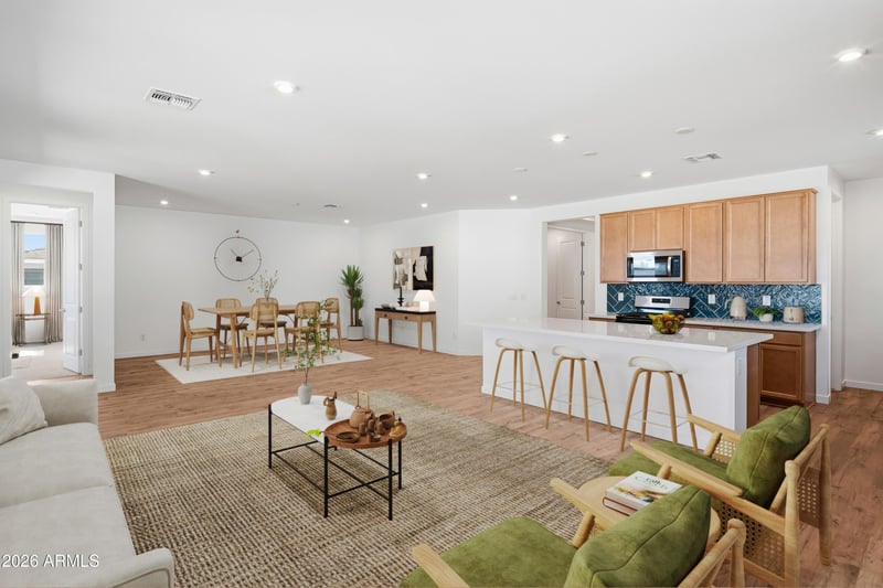 Listing details for 4919 239th Dr, Buckeye, AZ 85326 : Welcome to our beautiful Bartlett home located in the heart of Buckeye. This stunning home offers 4 bedrooms, 2 bathrooms, and a dedicated office, providing ample space for comfortable and flexible living. The primary suite boasts a large walk-in closet, double sinks, with a separate tub and walk in shower, while the additional bedrooms provide plenty of room for family or guests. Inside, the 2,166 sq. ft. layout features an open modern kitchen showcasing quartz countertops, a designer tile backsplash, and 42-inch oak cabinets. This exceptional home also includes SOLAR, delivering improved energy efficiency and long term savings.