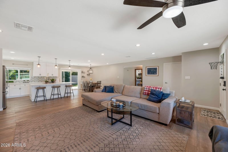 Listing details for 4931 Sharon Dr, Scottsdale, AZ 85254 : Back on market! NO HOA! Substantially Remodeled in 2020 with South Exposure on a sizable 10,065 sq.ft. lot, this home features a completely updated kitchen with quartz countertops, tile backsplash, oversized island, new cabinets, and stainless appliances. A spacious great room layout with split floor plan, upgraded flooring throughout, and new recessed lighting. Updated bathrooms plus major upgrades including newer roof, upgraded dual-pane windows and slider, updated molding and fixtures, fresh paint, newer water heater, and upgraded insulation. Additionally, there is an oversized laundry room, an easy-care pool with wrought iron fencing, covered patio and entry, front brick courtyard, Putting Green and RV gate/parking.