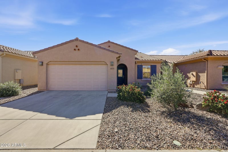 Listing details for 4935 Gulch Dr, Eloy, AZ 85131 : Looking for easy, turnkey living where you can simply arrive, unpack, and start enjoying the lifestyle? This beautifully furnished villa offers exactly that. This furnished Turnkey Villa is Lock-and-Leave Living at Its Best! This beautifully maintained 2-bedroom, 2-bath villa with a 2-car garage is truly move-in ready and full of charm. Ideally located within walking distance to the Sports Center, Clubhouse, Restaurant, and Pro Shop, this home offers the perfect combination of comfort, convenience, and resort-style living. Offered fully furnished and truly turnkey, everything inside stays, from the bedding and kitchen essentials to the tasteful décor; making your move effortless. Perfect as a seasonal retreat or full-time residence, you can simply bring your suitcase and start enjoying the Arizona lifestyle. The kitchen is a true highlight, designed for both everyday living and entertaining. It features upgraded cabinetry with convenient roll-out shelves, under-cabinet lighting, stainless steel appliances, granite countertops, a stylish backsplash, and a spacious island with breakfast bar. A skylight above fills the space with natural light, creating a bright and welcoming atmosphere. Beautiful upgrades continue throughout the home, including quartz bathroom vanities, 20'' x 20'' tile flooring, plantation shutters, custom window treatments, and two-tone interior paint. The garage is equally impressive with epoxy-coated flooring, built-in cabinets, a workbench, and a soft water system. Step outside to the east-facing covered patio with a 5-foot paver extension -- the perfect place to enjoy peaceful mornings with coffee or relax in the shade during Arizona's beautiful afternoons. Designed for low-maintenance, lock-and-leave living, the HOA handles exterior maintenance and landscaping so you can spend less time on chores and more time enjoying everything this vibrant resort community offers, including golf, pickleball, tennis, swimming, fitness facilities, softball, and a full calendar of social activities. Simply bring your suitcase, settle in, and start enjoying the Arizona sunshine and the incredible lifestyle this community is known for.