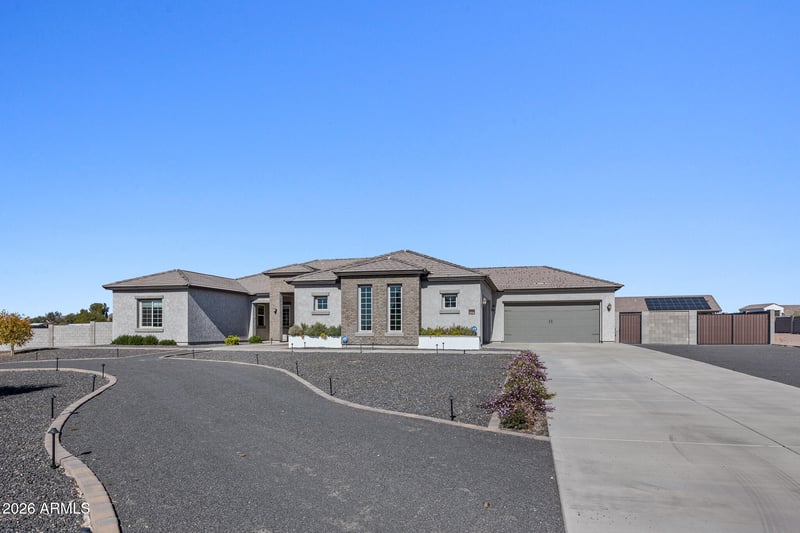 Listing details for 494 Haxtun St, San Tan Valley, AZ 85143 : Behind the prestigious gates of Whitewing at San Tan, this exquisite single-level estate sits on a private 1-acre lot surrounded by mountain views. Designed for elevated Arizona living, the split floor plan offers 4 bed, 4 bath including three with their own en-suite bathrooms. The chef's kitchen features a 6-burner gas cooktop, double ovens, and walk-in pantry ideal for entertaining. Step outside to a private resort-style backyard with heated pool and spa, travertine pavers, artificial turf, fruit trees, and a large covered patio. 4 car oversized garages include a pull-through rear-entry bay and are pre-wired for EV charging. Electrical subpanel added in 2025 provides infrastructure for a future casita or guest quarters. Opportunity to receive 1% towards closing costs w/ preferred lender Enjoy quiet mornings to sunset evenings under the Arizona sky. This is not just a home it's a lifestyle