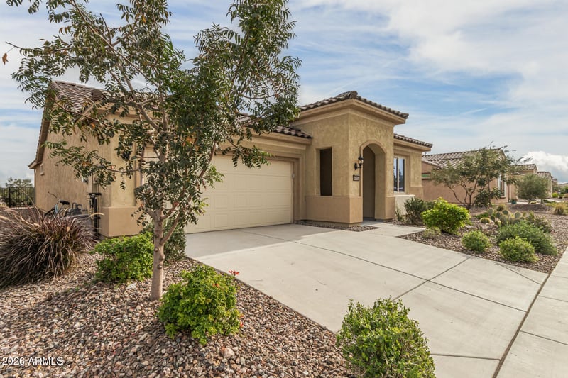 Listing details for 4995 Riverside Dr, Florence, AZ 85132 : GOLF COURSE HOME priced to SELL!! Perfectly positioned on Hole #3 of Poston Butte Golf Course, offering breathtaking mountain, desert & fairway views. The epoxied patio, extended pavers & fully fenced yard offer a place to unwind or entertain. This 2023 Preserve offers an open design w/ a chef lux kitchen complete w/ granite, gas cooktop & stainless appliances, dbl pull out shelves & a spacious walk-in pantry—ideal for everyday living. Relax in your primary suite, offering a spa-like experience w/ tiled walk-in shower, dual sinks, makeup vanity & spacious walk-in closet. The den, w/ glass French doors, provides versatility as a home office, guest room or creative studio. The garage w/convenient bump-out on 1 side for extra storage, workshop, golf cart or oversized vehicle. QUICK MOVE IN!! Sun City Anthem at Merrill Ranch offers a 48,000 SF recreation center w/ craft rooms for quilting, pottery, glass works, jewelry & crafts, spacious ballroom w/ stage for dancing, theatrical productions, concerts & more. PLUS full gym, work out rooms, indoor lap pool & spa, walking track, cafe area, card rooms, poker tables, pool table, ping pong table, business center, class room for interesting seminars! Troon Poston Butte Golf Course is one of the nicest in the area. Sun City offers Pickleball, Tennis, Bocce Ball, Horseshoes, Shuffleboard, clubs for all activities.......LIVE WHERE THE SURROUNDINGS DELIGHT, INSPIRE & CHALLENGE YOU!