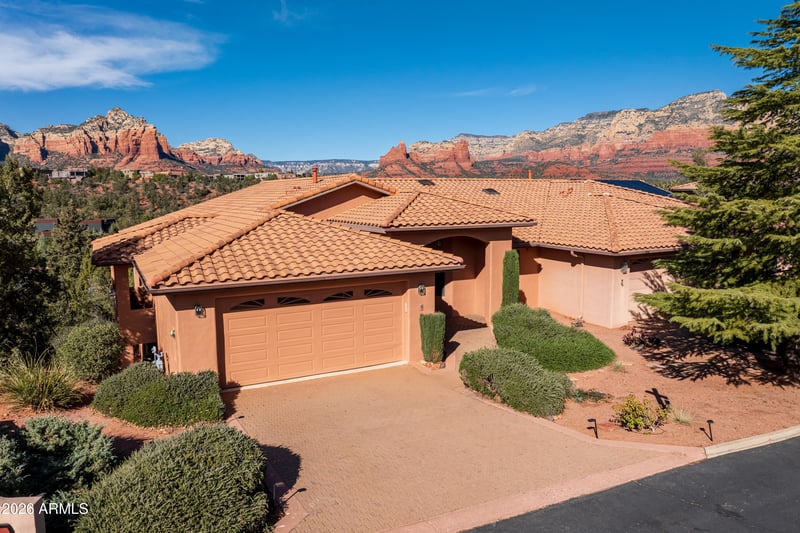 Listing details for 5 Elice Cir, Sedona, AZ 86336 : Incredible opportunity! 3444 square feet custom home in desirable Les Springs Gated Community! 4 bedroom 3 bath with most living space and garage access on main level. Spacious guest area on lower level includes a bedroom, full bath, family room & second full kitchen. Upper and lower patios with EXPANSIVE VIEWS provide flexible living options to enjoy stunning sunsets. This one owner property shows pride of ownership.