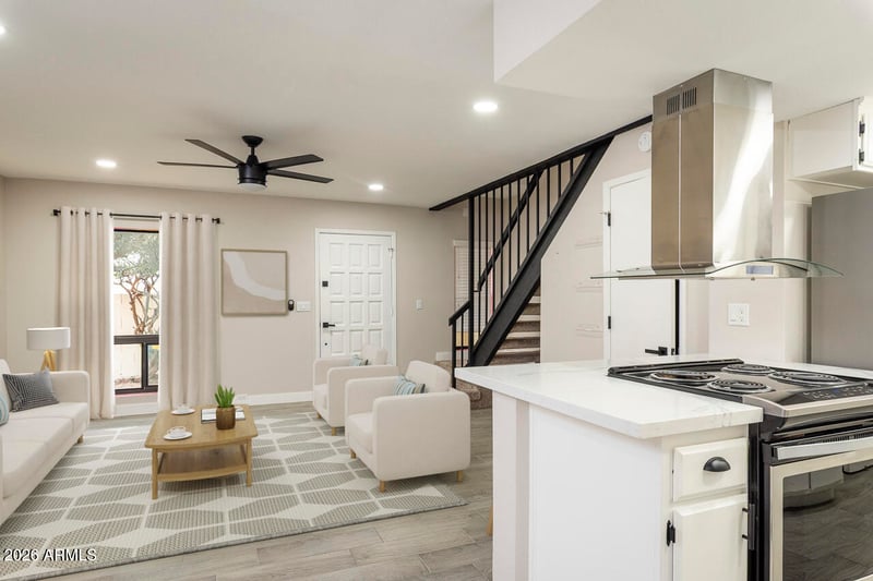Listing details for 5002 Hazel Dr #2, Phoenix, AZ 85044 : Updated and move-in ready, this 2-bedroom, 1.5-bath Ahwatukee townhome offers low-maintenance living in a highly convenient lifestyle-rich location. Inside, enjoy a functional layout with two bedrooms upstairs for privacy, and comfortable main-level living for everyday ease. Features include dual-pane windows, updated flooring, new counters & backsplash, renovated bathrooms, and updated lighting. Unwind on your private patio. Located minutes from Arizona Grand Resort, Golf, I-10 freeway access, dining, shopping, ASU, Sky Harbor Airport, and downtown Phoenix, this home is ideal as an active lifestyle base, lock and leave property, or primary residence. Experience it in person.