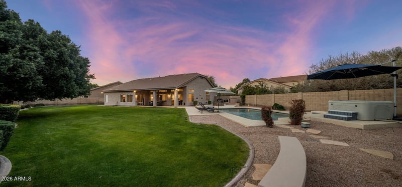 Listing details for 5011 Villa Rita Dr, Scottsdale, AZ 85254 : Set on an oversized lot in the sought-after Triple Crown community of Scottsdale, this beautifully reimagined single-level home offers the ideal blend of space, style, and location in the coveted 85254 zip code. Featuring 4 bedrooms, 2 spa-inspired remodeled bathrooms, and a 3-car garage, the home has been thoughtfully updated throughout with new LVP flooring, fresh interior paint, vaulted ceilings, and custom finishes. The kitchen and beverage bar showcase upgraded countertops and dual wine refrigerators, perfect for effortless entertaining. Outdoors, enjoy a private retreat with a resort-style heated pool and spa, fireplace lounge and natural grass. Surrounded by parks, walking paths, and highly highly rated schools, this home delivers an elevated lifestyle.