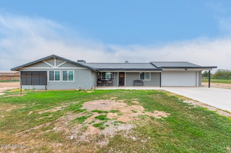 Listing details for 50135 Jean Dr, Maricopa, AZ 85139 : 3.3 acres of horse property with irrigation and mountain views. Enjoy quiet country living in Papago Buttes with the amenities of the city, including a private water company and paved roads. This amazing home has been extensively updated inside and out, and includes a new metal roof and new septic system. The lot is completely fenced and has a solar-powered remote-controlled gate to give you privacy and impress your guests. Need parking space? In addition to the 2-car garage there is a 108-foot long driveway that can hold another 10 cars, and the backyard Tuff Shed provides additional storage. The 10x38 patio has been completely screened in and has new epoxy floors, making it a great space for entertaining in summer and winter. JUST APPRAISED AT $660,000, GIVING YOU INSTANT EQUITY!!