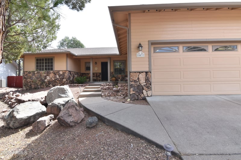 Listing details for 503 Wood Hill Rd, Payson, AZ 85541 : Welcome to your pristine Payson retreat found in the desirable Woodhill community close to shopping, hiking, parks and lakes! This single-level home offers 3 bedrooms, 2 bathrooms, and approximately 1,674 sq ft of thoughtfully designed living space on a beautifully landscaped lot. Step inside to an inviting open-concept layout featuring vaulted ceilings, a spacious family room with a stunning stone accent wall and cozy pellet stove, and a large picture window framing serene backyard views. Open kitchen with lots of cabinets & walk-in pantry--ideal for both everyday living and entertaining. The primary suite provides a relaxing escape with a walk-in closet and a beautifully tiled walk-in shower. Enjoy outdoor living year-round on the expansive east-facing covered patio, offering cool shade and privacy among mature trees. Additional features include an oversized 3-car garage (approx. 850 sq ft) with high ceilings, built-in storage cabinets, mop sink and epoxy flooring--perfect for toys, tools, or workshop space. Recently upgraded interior with new tile flooring, HVAC, countertops, Stainless steel appliances and fresh paint. Located just steps from Rumsey Park with direct access to pickleball, tennis, playgrounds, library, and more, this home combines comfort, convenience, and the best of Payson living.
