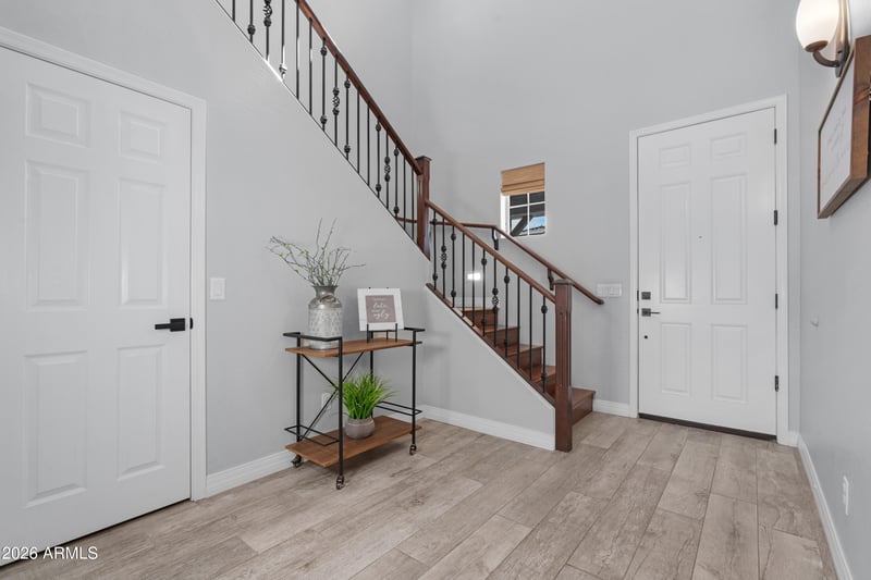 From the moment you walk in, you'll notice the fresh, modern feel w/ brand-new quartz countertops, updated bathrooms, & durable LVP flooring upstairs that's perfect for busy everyday life. The kitchen is truly the heart of the home, featuring built-in SS appliances, & upgraded quartz, Custom paint & thoughtful upgrades throughout give the home a clean, comfortable feel that's both stylish & easy to live in. Step outside & you'll find mature trees , tumbled pavers, a built-in BBQ, & even a putting green for fun evenings. The garage offers epoxy flooring, storage cabinets, & service door. Living in The Bridges one can enjoy lakes, parks, walking trails & minutes away from Gilbert Regional Park!