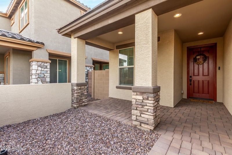 Listing details for 5070 79th Ln, Glendale, AZ 85303 : The search is finally over! This stunning 4-bedroom home welcomes you with a 2-car garage, stylish pavers, lovely stone accents, and a front patio that sets an inviting tone. The serene living room boasts vaulted ceilings, recessed lighting, blinds, and durable tile flooring. Cook delicious meals in the eat-in kitchen, equipped with granite counters, crisp white shaker cabinets, stainless steel appliances, a pantry, and a peninsula with a breakfast bar for casual meals. The primary bedroom boasts soft carpeting, an ensuite with double sinks, and a walk-in closet. Spend relaxing outdoor moments in the backyard, complete with a covered patio, pristine artificial turf, and a fun play area. Don't miss out on this fantastic opportunity!