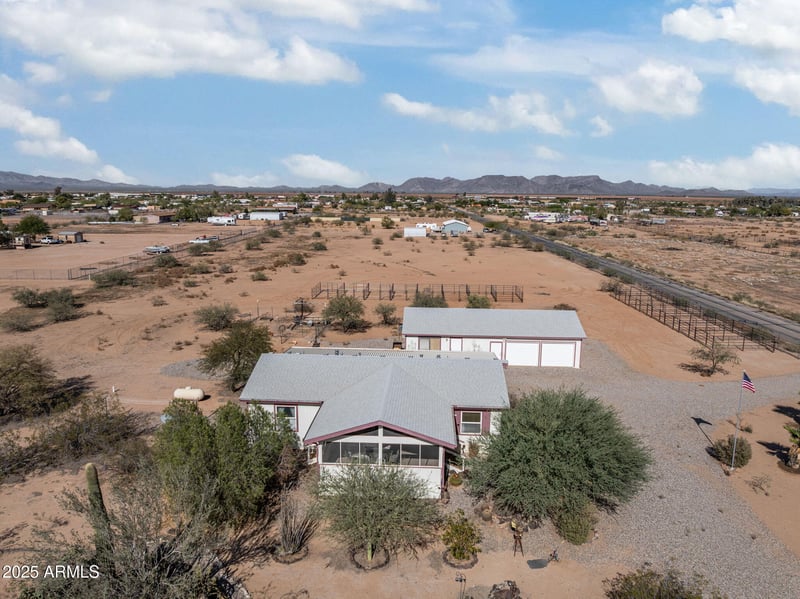 If you're looking for a turn-key equestrian setup with room to expand, this amazing 7.50 acre horse property checks every box. Located on a fully fenced, flat, corner lot off a paved road. This exceptionally well-kept 2 bd, 2 ba home with a huge den is move-in ready and designed for comfort and convenience ..... Enjoy peaceful desert living from the fully enclosed, covered porch, complete with ceiling fans, overlooking a serene cactus garden and water feature. Inside, the home comes fully furnished, making it the perfect winter retreat.