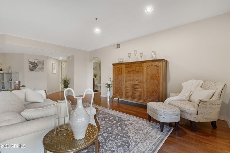 Listing details for 5104 32nd St #126, Phoenix, AZ 85018 : Experience refined living in the heart of the prestigious Biltmore corridor with this beautifully remodeled 3-bedroom, 2-bath residence ideally positioned at a premium elevated ground-level location offering both privacy and convenience. This sophisticated home showcases rich real wood flooring (from California) throughout the living room, dining room, tile kitchen, complemented by new plush carpeting in the bedrooms and tile flooring in all the right places. The thoughtfully designed kitchen features granite tile countertops and backsplash, enhanced by additional recessed lighting in the kitchen and living areas that creates a warm, inviting ambiance perfect for entertaining or relaxing at home. Custom designer paint and tasteful upgrades throughout elevate the overall aesthetic while maintaining comfort and functionality. Residents enjoy resort-style amenities including a heated pool and spa, fitness center, elegant clubhouse, barbecue areas, and beautifully landscaped lush grounds that create a tranquil retreat within the city. Perfectly located at the coveted intersection of Camelback Road and 32nd Street, this exceptional residence places you just steps from upscale dining, boutique shopping, grocery markets, and the vibrant Biltmore lifestyle, offering the ideal blend of luxury, walkability, and convenience in one of Phoenix's most sought-after neighborhoods.