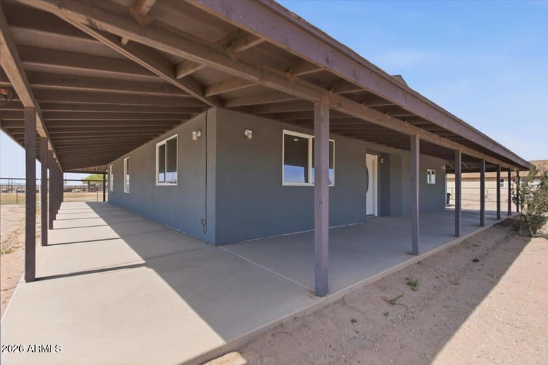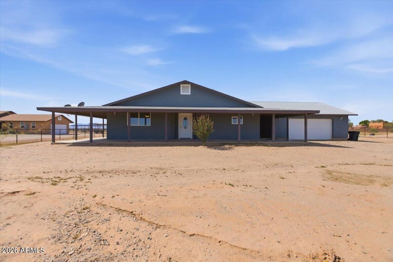 Listing details for 5122 382nd Ave, Tonopah, AZ 85354 : Built in 2024 and set on a FULLY FENCED 1-acre horse property with no HOA, this 2,000 sq ft home offers privacy, functionality, and modern comfort. The property is secured with no-climb fencing and a private solar gate. Inside you'll find 3 spacious bedrooms, 2 full baths, and a flexible bonus room. The primary suite features dual vanities, a large walk-in closet, and a well-appointed bath. The kitchen showcases stainless steel appliances and contemporary finishes. A massive wrap-around porch, oversized 2-car garage, horse corral with 2 custom shade structures, and built-in security system complete this move-in ready opportunity.