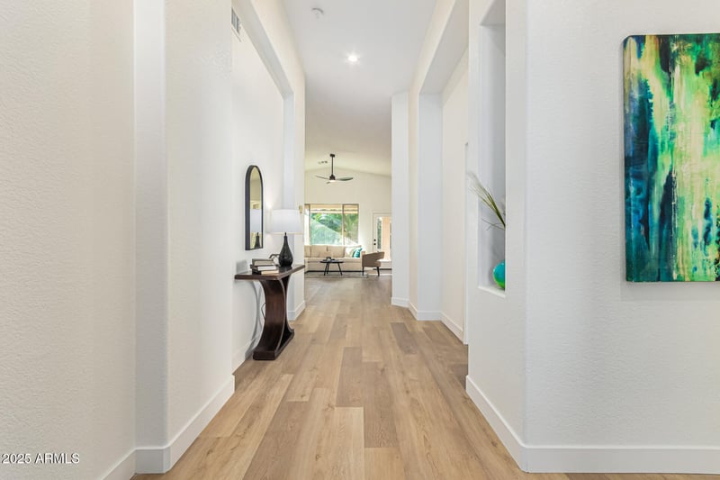 Listing details for 5126 Sugarberry Ct, Gilbert, AZ 85298 : New Roof installed in 2026. Discover this beautifully updated 3-bedroom, 2-bath home tucked away on a quiet cul-de-sac in the guard-gated, 55+ Active Adult community of Trilogy at Power Ranch in Gilbert. This turnkey residence offers new flooring, updated lighting, and a refreshed kitchen with modern cabinetry, quartz countertops, and stainless steel appliances. The private primary suite includes dual vanities, a garden tub, walk-in shower, and generous closet space. Two additional bedrooms provide flexibility for guests or a home office. Experience resort-style living with amenities that include golf, tennis, pickleball, bocce, pools, a full fitness center, and a wide variety of social clubs and activities.