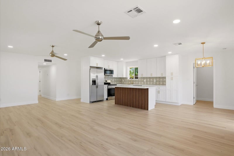 Listing details for 5222 Hatcher Rd, Glendale, AZ 85302 : Experience the ultimate transformation in this stunning West Valley residence, where every square inch has been meticulously reimagined to offer the feel of a brand-new home at a reasonable price. Situated in a highly desirable neighborhood, this property stands out as a true masterpiece of modern design and quality craftsmanship. From the moment you step through the front door, you are greeted by an open and airy floor plan illuminated by high-efficiency windows that flood the home with natural light. Durable, high-end flooring flows seamlessly throughout the entire house, providing a sophisticated foundation for the contemporary finishes found in every room.
