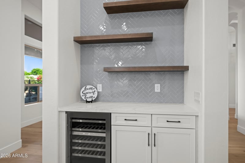 Listing details for 5238 Wagoner Rd, Scottsdale, AZ 85254 : This completely reimagined home has been remodeled from top to bottom -- new roof, plumbing, hard wood flooring, paint inside and out, and so much more. With soaring 12 ft ceilings the stunning new kitchen is the heart of the home, featuring sleek new appliances, soft close cabinets, quartz counters, bright finishes, HUGE island and a built-in wine fridge perfect for the entertainer. The luxurious master suite will take your breath away with a spa-inspired bathroom showcasing a oversized glass shower and a deep soaking tub, your own private retreat. Step outside to a breathtaking backyard oasis with a sparkling pool framed by swaying palm trees, a built-in grill and island, and a cozy fire pit lounge area ideal for Arizona evenings. With an ideal location close to the 101 and 51 freeways and highly rated schools in the magic zip code of 85254, this one checks all the boxes. A 3-car garage with Tesla charger, and no neighbors behind round out this exceptional home!