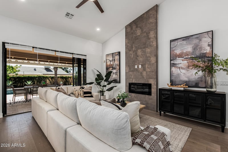 Listing details for 5239 Kathleen Rd, Scottsdale, AZ 85254 : Beautifully updated home on generous corner lot just a block away from community park. Every surface new with quartz waterfall counter tops on kitchen island. New lighting, cabinets, quartz countertops,, new flooring. Very open floorplan. Light beachy engineered wood flooring is just gorgeous., Fold back door to covered patio and pool area. New roof 2026.
