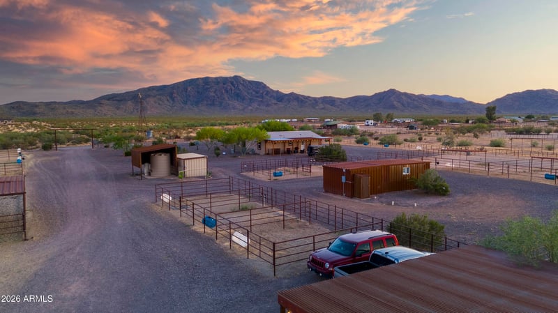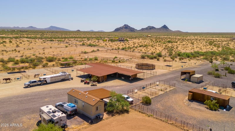Listing details for 52510 Williams Rd, Aguila, AZ 85320 : Welcome to a true equestrian paradise, fully permitted and set on 12.8 acres of flat, usable, flood-free land-designed with intention and built for those who live and breathe the equestrian lifestyle.