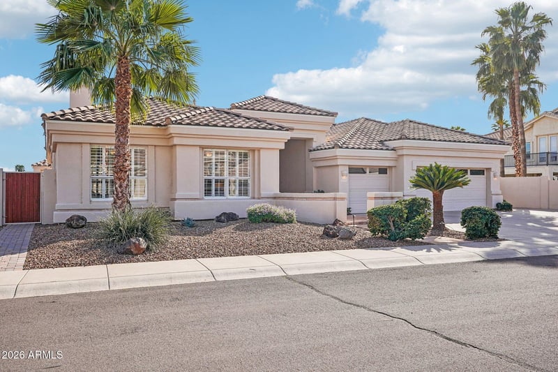 Listing details for 5287 Quail Ave, Glendale, AZ 85308 : STUNNING WATERFRONT Cul-de-sac lot. LONG LAKE & MTN VIEWS. BEAUTIFUL MARACAY SINGLE LEVEL HOME. Great curb appeal. ALMOST 1/4 ACRE LOT. SOUTH facing backyard, BOAT DOCK, GAZEBO, Artificial turf, BUILT IN GAS GRILL. LARGE FLAGSTONE COVERED PATIO, SHADES, DRAPES, FORMAL DIN/LIVING RM w/ Great LAKE VIEWS! FAMILY ROOM off kitchen boasts MTN VIEWS & GAS FIREPLACE! PLANTATION SHUTTERS. PRIMARY BATH REMODELED. HEATED TUB, TILE BACKSPLASH, VANITY, AWESOME CABINETRY, ROLL IN TILED SHOWER, TV, BIDET & CHANDELIER. Filtration system. GENERAC Guardian 24kW! NEW DOUBLE GATES. 3 car garage + Slab, WHITE cabinets & epoxy floor. Large Laundry Room. 10-13' HIGH CEILINGS, 2x6 CONSTRUCTION. Roof/Underlayment 2017. Flat Roof redone 2/25. Water Heater, Nest Thermostats & ELECTRIC VEHICLE CHARGING 2025.