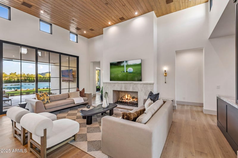The grand foyer opens to a formal living and dining space with soaring ceilings and 10 foot glass doors that open up to your private backyard oasis. The home features a custom bar area—setting the stage for unforgettable entertaining. The professional kitchen features dual islands with plenty of seating and storage, a 60-inch Wolf range, Sub-Zero refrigerator and freezer and nearly every imaginable amenity. There is an incredible morning room and espresso bar and the separate family room adjacent to the kitchen is the ultimate lounge area. There is a separate office and a dedicated wellness/exercise room that features a built-in infrared sauna! The owner's suite is a private retreat showcasing vaulted ceilings, a gas fireplace, two closets and a spa-inspired bath featuring a huge steam shower and a separate vanity area. Outdoors you'll enjoy beautiful mountain views, a stunning automatic self-cleaning pool, with a separate spa and richly designed landscaping all wrapped in a private setting. There's even a front courtyard entertaining area with an outdoor gas fireplace just outside of the separate guest casita. This private estate features a custom gated entry, motor court and a 4-car garage all located in a cul-de-sac setting in one of Paradise Valley's most coveted and serene settings.This is the ultimate luxury lifestyle living-just completed and move-in ready!