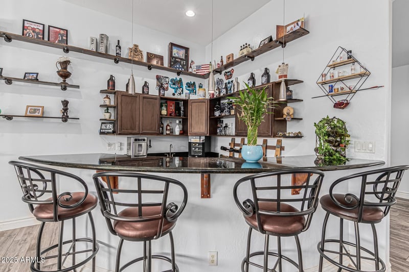 Listing details for 5342 196th Ave, Litchfield Park, AZ 85340 : Seller offering 2 points toward closing costs—flexible terms welcome! Home sweet home—spacious 3-bed + den, 3.5-bath with two owner's suites, 3-car garage & no HOA! Enjoy energy savings with solar and bright open spaces featuring soaring ceilings & wood-look floors. The gourmet kitchen boasts granite counters, dual islands, built-in appliances. Craft your favorite cocktail at your built-in bar, then relax in the backyard with mountain views—White Tank Mountains minutes away—built-in BBQ, pavers, lush lawn & covered patio. Smart, stylish & move-in ready at $769,900!