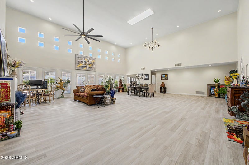Listing details for 5345 Mclellan Rd #107, Mesa, AZ 85205 : This one-of-a-kind, 4 bed 3 bath home is beautiful, modern, and move-in ready! The home features an open floorplan with soaring 18' ceilings, bold design, and attention to detail throughout. The custom kitchen has new cabinets and includes iron shelving, a built-in island/table combo for eat- in convenience, and stainless appliances. The fabulous primary suite feels like being at a resort with a fireplace and a bath worthy of being at the spa. Three additional large bedrooms and large laundry room add all the extras to round out this exceptional home. The backyard continues the feeling of being at a resort with a covered patio, Pebble Tec pool, and low-maintenance turf. Don't miss this rare opportunity to own a spectacular home in Mesa's Alta Mesa Estates!