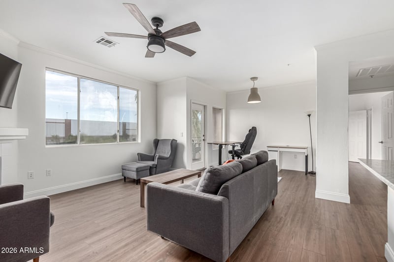 Listing details for 5345 Van Buren St #335, Phoenix, AZ 85008 : Beautifully updated 1 bed / 1 bath apartment featuring a bright, open layout and modern finishes throughout. The kitchen offers white cabinetry, granite countertops, subway tile backsplash, and stainless steel appliances. The living area is accented by wood-style flooring, a cozy fireplace, ceiling fan, and abundant natural light. Enjoy resort-style living with access to a community pool, fitness center, and well-maintained common areas. Conveniently located near shopping, dining, and major commuter routes. Ideal for low-maintenance living in a desirable community.