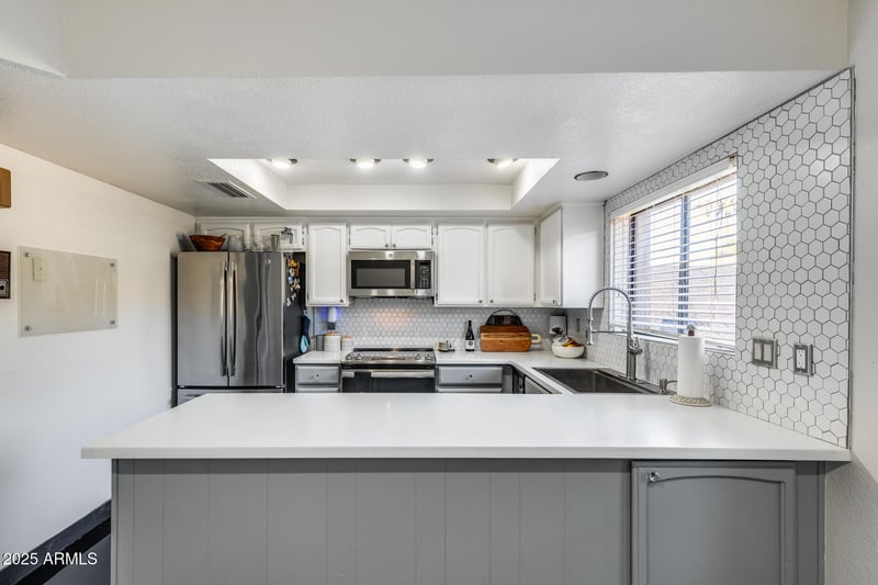 Listing details for 5350 Central Ave #30, Phoenix, AZ 85012 : Nestled in the heart of North Central Phoenix, this updated 2 bed / 2.5 bath end-unit townhome offers charm, comfort, and unbeatable convenience. The smart floor plan includes two master bedrooms, each with a full bath. The upstairs suite showcases vaulted ceilings, a walk-in closet, and a private Juliet balcony overlooking the courtyard pool. Recent kitchen updates (including a wine fridge) as well as bathroom updates make this home move-in ready with the refrigerator, washer, and dryer all included. Enjoy both front and back patio spaces, a cozy wood-burning fireplace, and the ease of assigned parking. Perfect as a lock-and-leave home or investment property, this residence is steps from Postino, Joyride Tacos, The Bridle Path, and more. With its AAA location in one of Phoenix's most desirable neighborhoods, this townhome truly has it all.