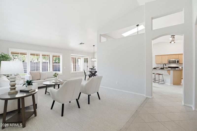 Listing details for 5361 Saragosa St, Chandler, AZ 85226 : Discover an incredible opportunity to own a beautifully maintained home in one of Chandler's most convenient locations. Just minutes from the 101 & 202 freeways, top-rated schools, parks, shopping, & dining. Impeccably cared for & move-in ready. A neutral color palette, soaring vaulted ceilings, & an abundance of natural light & skylights create a bright, welcoming atmosphere throughout. The thoughtfully designed floor plan features formal living & dining spaces, along with a separate family room, providing flexibility for both everyday living & entertaining. The kitchen showcases granite countertops, stainless appliances, center island w/breakfast bar, & generous cabinetry for storage. Spacious backyard with covered patio. A true Chandler gem! Ask about available closing cost assistance.
