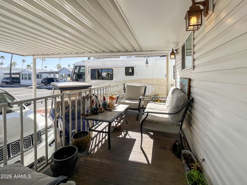 Listing details for 539 Rock Hound Dr #539, Apache Junction, AZ 85119 : Welcome to this stunning home in the highly desirable Golden Vista Resort offering quality upgrades, privacy, mountain views, in a very active resort. As you step inside you will notice the high ceilings, abundant natural light from numerous windows, tape & textured drywall throughout, & real hardwood flooring complemented by upgraded window coverings. The updated kitchen features Corian countertops, stainless steel appliances, real wood cabinetry, & a reverse osmosis system creating a functional & inviting space. The bathroom offers a walk-in shower, while the spacious bedroom includes a queen-sized bed, built-in dresser storage, & large mirrored closet doors providing excellent storage & room to move. Major updates include a roof approximately 6 years old & an air conditioning system approximately 7 years old. Outside, the expansive Trex deck provides generous outdoor seating, perfect for enjoying your morning coffee while taking in beautiful Superstition Mountain views. The raised additional storage or office/laundry room is fully finished with a full-size washer & dryer & ample extra storage space. This home backs to the exterior of the community, meaning no immediate neighbors behind you for added privacy. Golden Vista offers a vibrant lifestyle with activities available every day including pickleball, tennis, hiking, softball, sewing rooms with long-arm quilting, stained glass, pottery, & endless opportunities to enjoy.