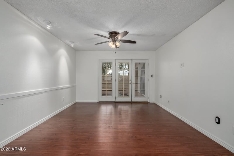 Listing details for 540 May -- #1148, Mesa, AZ 85201 : Inviting apartment in Los Racimos Community! Enter to see an open layout featuring neutral paint, a blend of wood-style & tile flooring, & French doors to the patio for indoor-outdoor flow. A striking mirror in the dining area enhances the sense of space & light! The kitchen offers plenty of cabinetry, built-in appliances, track lighting, & a two-tier peninsula w/breakfast bar. This gem includes two generously sized bedrooms, each with spacious closets. One of the bedrooms enjoys private access to the patio! The bathroom has a convenient tub/shower combination. Plus, a stacked washer & dryer for everyday ease. Enjoy relaxing on your private covered patio with a storage room. There's one assigned covered parking space & one assigned uncovered space. Two community pools! Don't miss it!