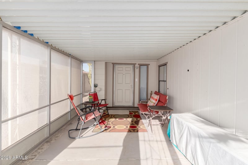 Listing details for 5402 Mckellips Rd #186, Mesa, AZ 85215 : Spacious, move-in ready, and full of value! This 2-bedroom home features a desirable open floor plan with vaulted ceilings, wood-look floors, and a bright, welcoming living area that flows seamlessly into a formal dining space--perfect for everyday living and entertaining. The kitchen offers matching appliances, ample cabinetry, and plenty of counter space. The oversized primary suite is a standout, offering a true retreat with dual sinks, a soaking tub, and generous closet space. Recent upgrades include a newer roof (2021), energy-efficient dual pane windows, and a water heater installed in the fall of 2025. Refrigerator, washer, and dryer are all included--making this home truly move-in ready. Enjoy a private screened-in patio plus access to Sunrise Village's gated, resort-style amenities including a heated pool, spa, fitness center, clubhouse, and a full calendar of social activities. Conveniently located near shopping and dining--this home delivers space, comfort, and lifestyle at an incredible value!
