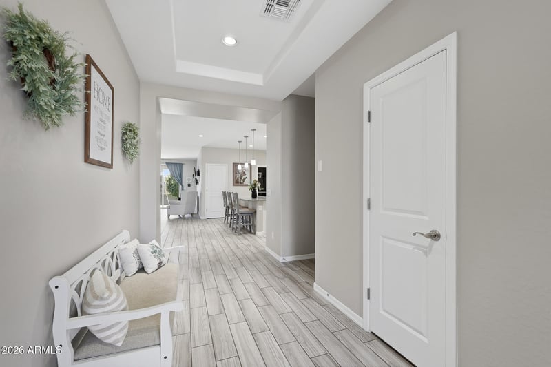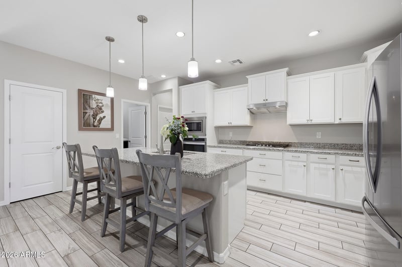 Listing details for 5419 Leodra Ln, Laveen, AZ 85339 : Built in 2019, this well-maintained 3-bedroom, 2-bath home offers 1,942 sq ft of open, functional living space. The spacious great room flows into the kitchen and dining area, creating an ideal layout for everyday living and entertaining. The kitchen features ample cabinetry, generous counter space, and a large island.